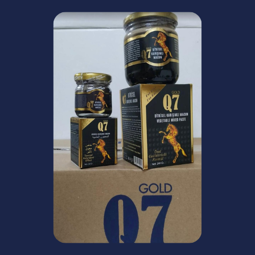 Der Q7 Gold Bitkisel Karışımlı Macun ist eine pflanzliche Kräutermischung in Honigbasis, auch bekannt als „Vegetable Mixed Paste“. Dieses Premium-Produkt kombiniert ausgewählte pflanzliche Inhaltsstoffe mit einer honigartigen Konsistenz und wird in einem hochwertigen Glasbehälter geliefert.
